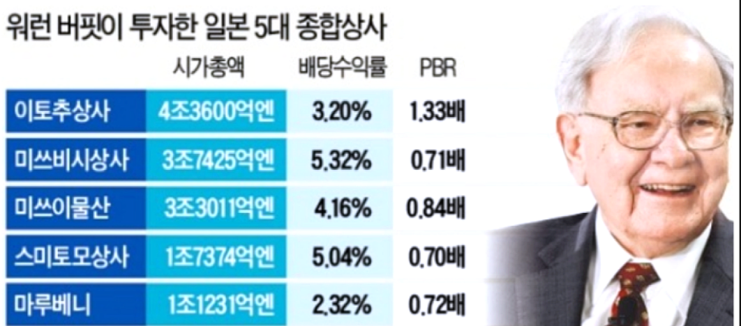 워런 버핏이 투자한 일본의 주요 5대 종합상사의 정보는 다음과 같습니다.