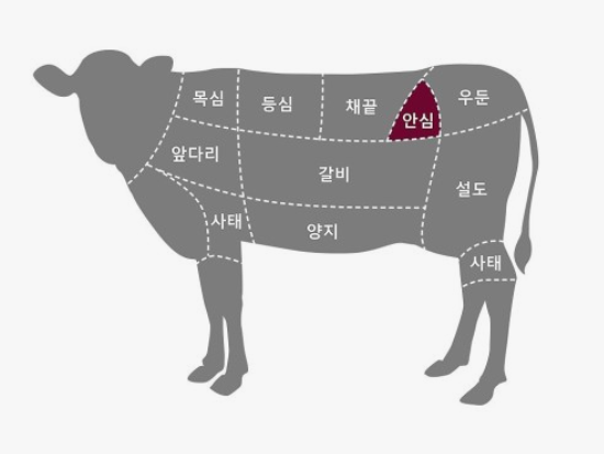 - 안시살 옆에 붙어있는 부위, 안심과 등심 등 여러부위 맛을 합쳐 놓은 듯한 맛
